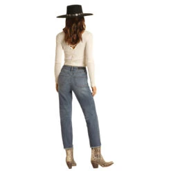 Rock & Roll Cowgirl Button Bell Bottom Dark Vintage Wash Jeans