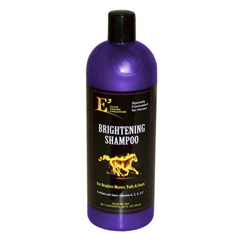 This Brightening Shampoo is fortified with Nano Vitamins A, C, E & F for superior absorption and penetration leaving brighter manes, tails and coats. It contains optical brighteners that give your horse brighter whites, shiny highlights and silvery, sparkling grays.