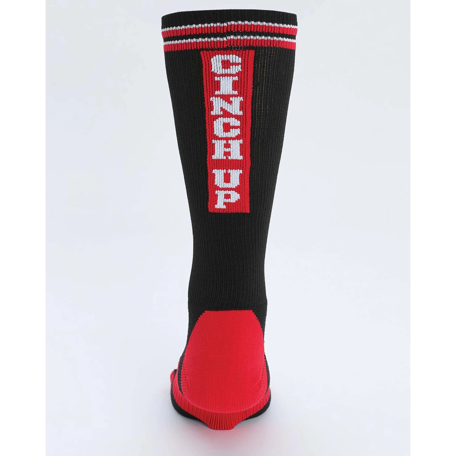This pair of black and red crew socks were made right here in the USA. CINCH socks are equipped with arch support, targeted cushioning, cooling mesh and moisture wicking technology.