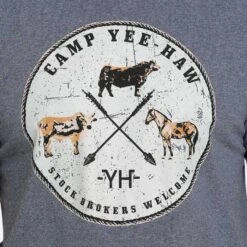 This new graphic tee from Cinch is perfect for any occasion, rather your going out with friends or taking on chores at the homestead. This heather blue tee features a crew neck and has a cotton-poly blend that gives off a soft and comfortable feel.Â