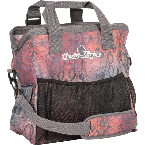 This groom tote from classic equine is made of tough durable poly. It is perfect to fit all of your essential grooming supplies plus a water bottle or cell phone.