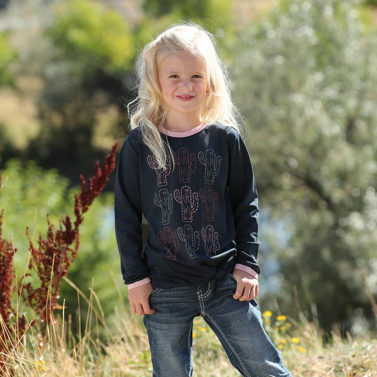For the little girl that loves the desert this cactus shirt is perfect. Design details include an easy pullover style with round neck and trendy tie front.