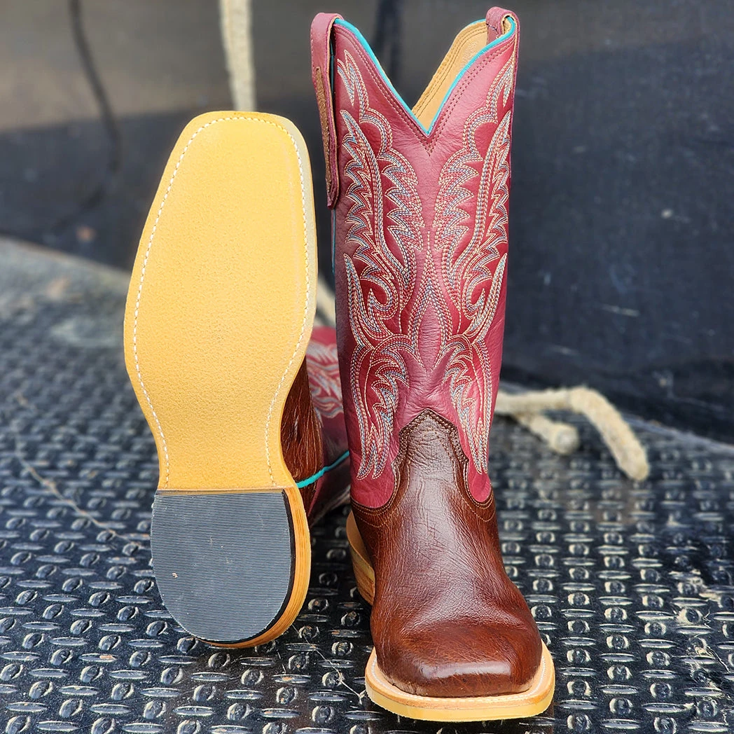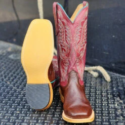 Stunning pair of smooth ostrich boots from Fenoglio Boot Co. These boots are made for the hard working cowboy, that still likes style! They feature a beautiful Cabernet colored Shaft. These boots have the ranch tough outsole so they will be sure to last and stand up to long day in the saddle or a day at the office too! Handmade in Nocona, TX USA!