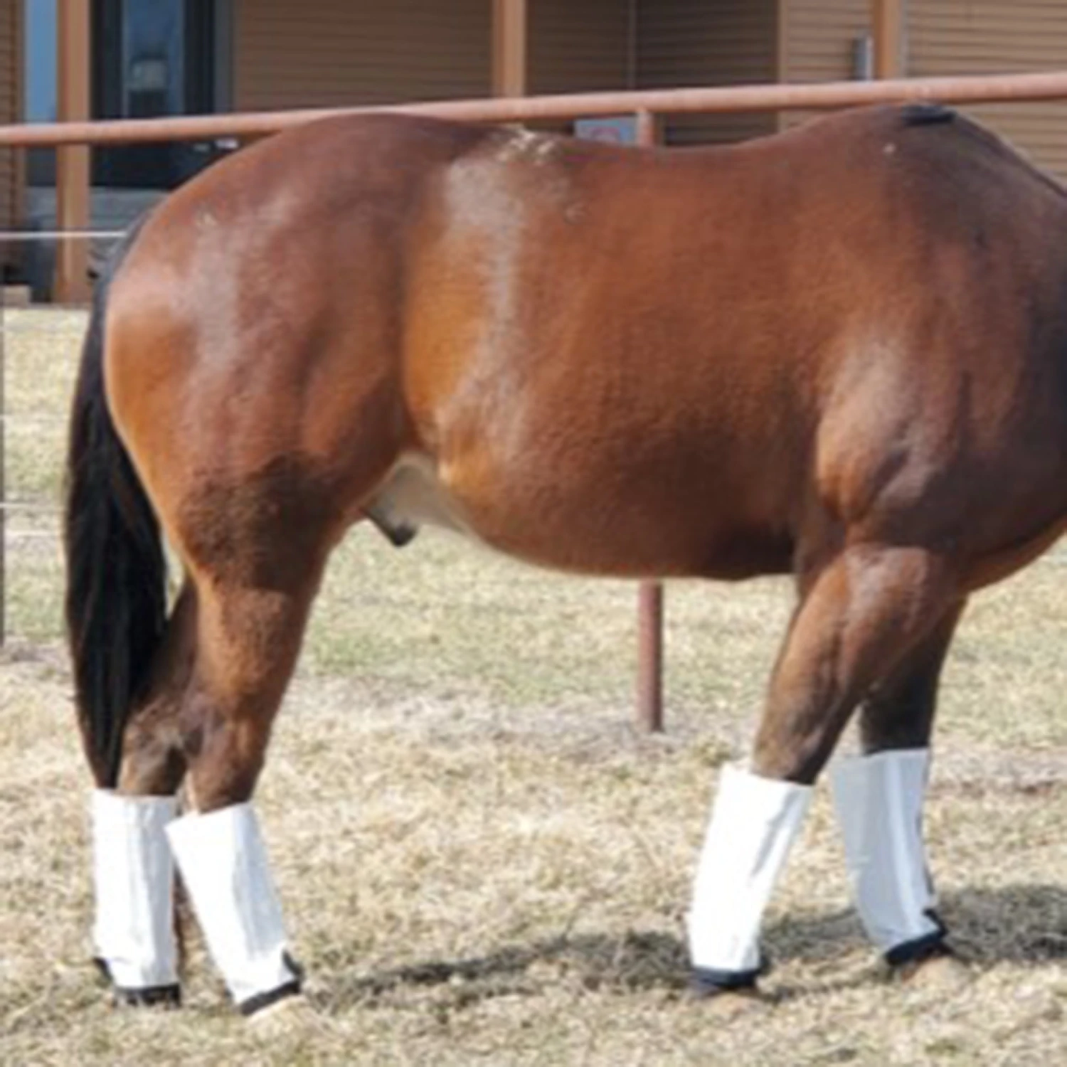 These made in America fly boots help prevent insect bites and botfly eggs on horses legs. They also help to reduce joint inflammation, hoof wear, and shoe wear from repetitive stomping. A new feature that the Fly Free boots differ from other brands is there “stay on” Velcro fasteners, which is comparable to one you would see on an over reach boot. With this new feature, most spend little to no time at all pasture hunting for fly boots. Another advantage to these boots is they also help with scratches by keeping morning dew off the horses legs.