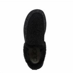 Slip into this ultra comfy Denny Sparkling Black moccasin-inspired bootie from Hey Dude! A soft, subtle bootie constructed in a soft wool blend with plush faux fur lining to keep your feet warm and dry all winter long. Finished off with contrasting, hand-stitched details and glitter-woven finishes throughout.