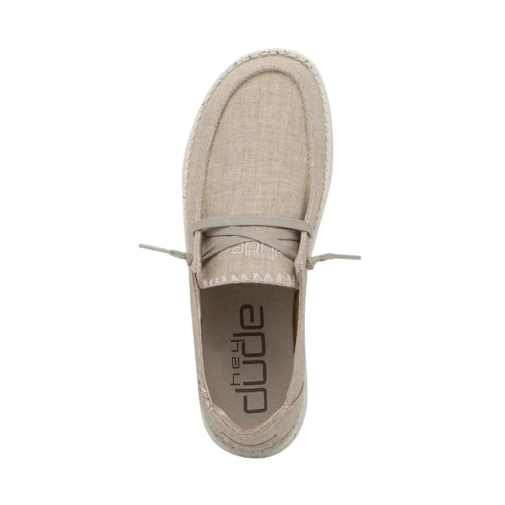These Hey Dude Wendy Dusty Inca’s are a soft, breathable cotton canvas in an easy, neutral color. Featuring an easy-on system with elastic laces and an ultralight outsole for all-day comfort. A perfect shoe for everyday wear.Â