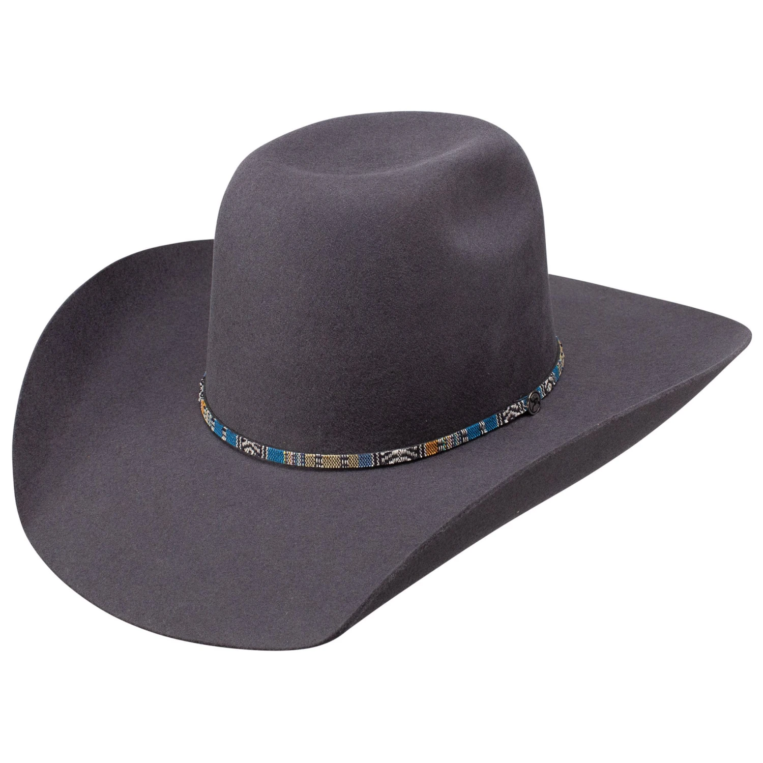 Hooey hit it out of the park with this new 6X Silver Smoke by Resistol! It features an eye catching hat band that has the Hooey Pin on it. This hat has a 4 1/4″ brim, with a 5 1/4″ crown.