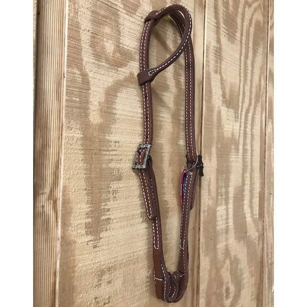 This oiled 5/8″Â one ear features basket weave tooling with a scrolled antiqued silver conway buckle. The oiled finish is going to keep the leather soft and flexible.