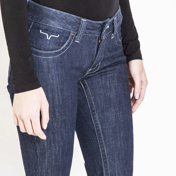 The Jolene jean from Kimes Ranch is the most figure flattering low-rise jean, it sits perfectly on the hips. This jean has a wide boot cut with silver stitching, the Jolene will soon become your favorite pair of new jeans.