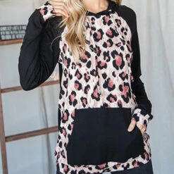 Who said causal cannot be cute? This hoodie is perfect for running errands and grabbing your favorite coffee or simply relaxing with friends. Leopard print never goes out of style especially contrasted with black. Plus kangaroo pocket is so convent when your hands are full!Â
