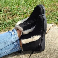 Keep your feet warm and comfortable in these stylish Minnetonka Black Moccasins Style Booties.Â