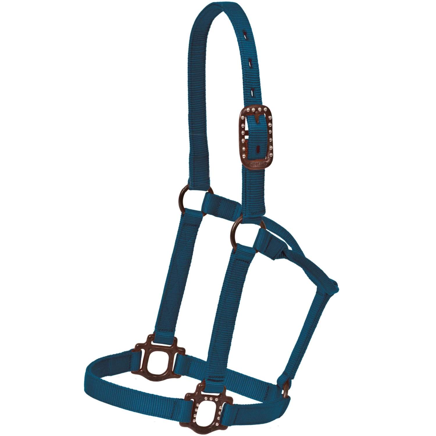 The durable and stylish hardware gives this a unique look while sustaining top quality. Halter is made from 1″ triple-poly nylon, has a comfort rolled throat, heat sealed oval holes and precise stitching. Available in horse size only.