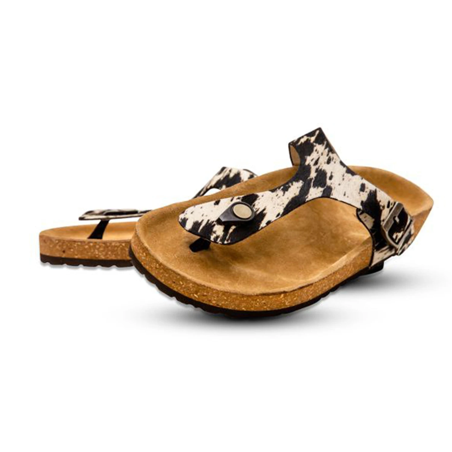 These hide sandals will go with any outfit. They are hand tooled and feature a side buckle and arch support.