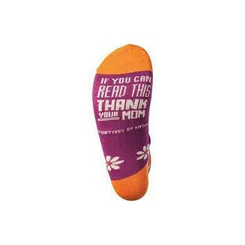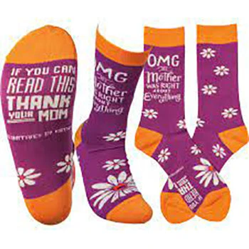 What a perfect gift for your daughter! These colorful socks feature the sentiment OMG My Mother Was Right About Everything on the sides, and If You Can Read This Thank Your Mom on the sole.