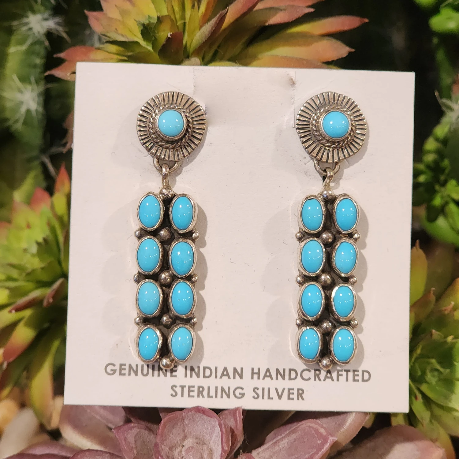 These are a beautiful pair of post style dangles that have 9 stones in each earring. The color of this sleeping beauty turquoise is to die for.