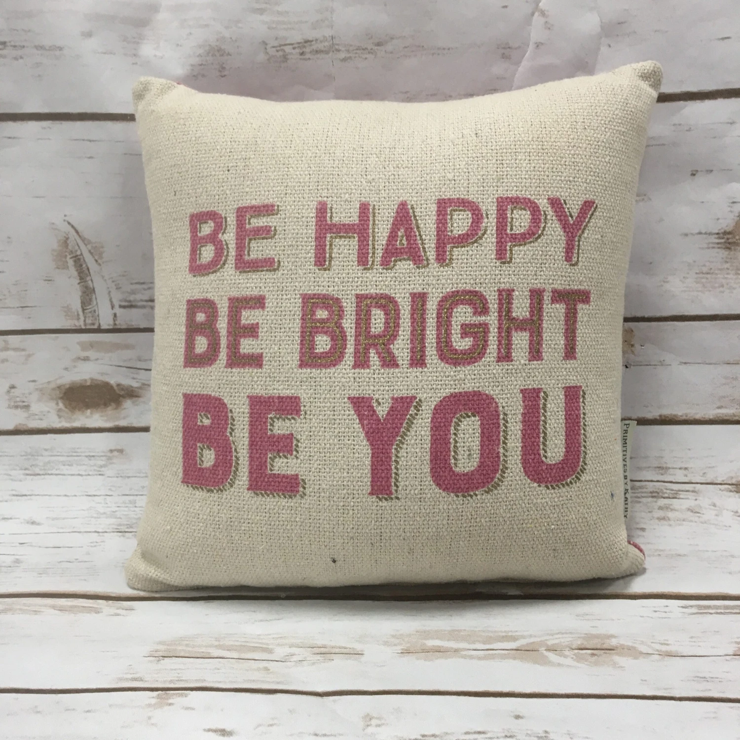 This pillow is soft and squishy! Guaranteed to brighten up any living room of bedroom! One side of the pillow reads, “Be Happy, Be Bright, Be You.” The other side is pink with arrows!