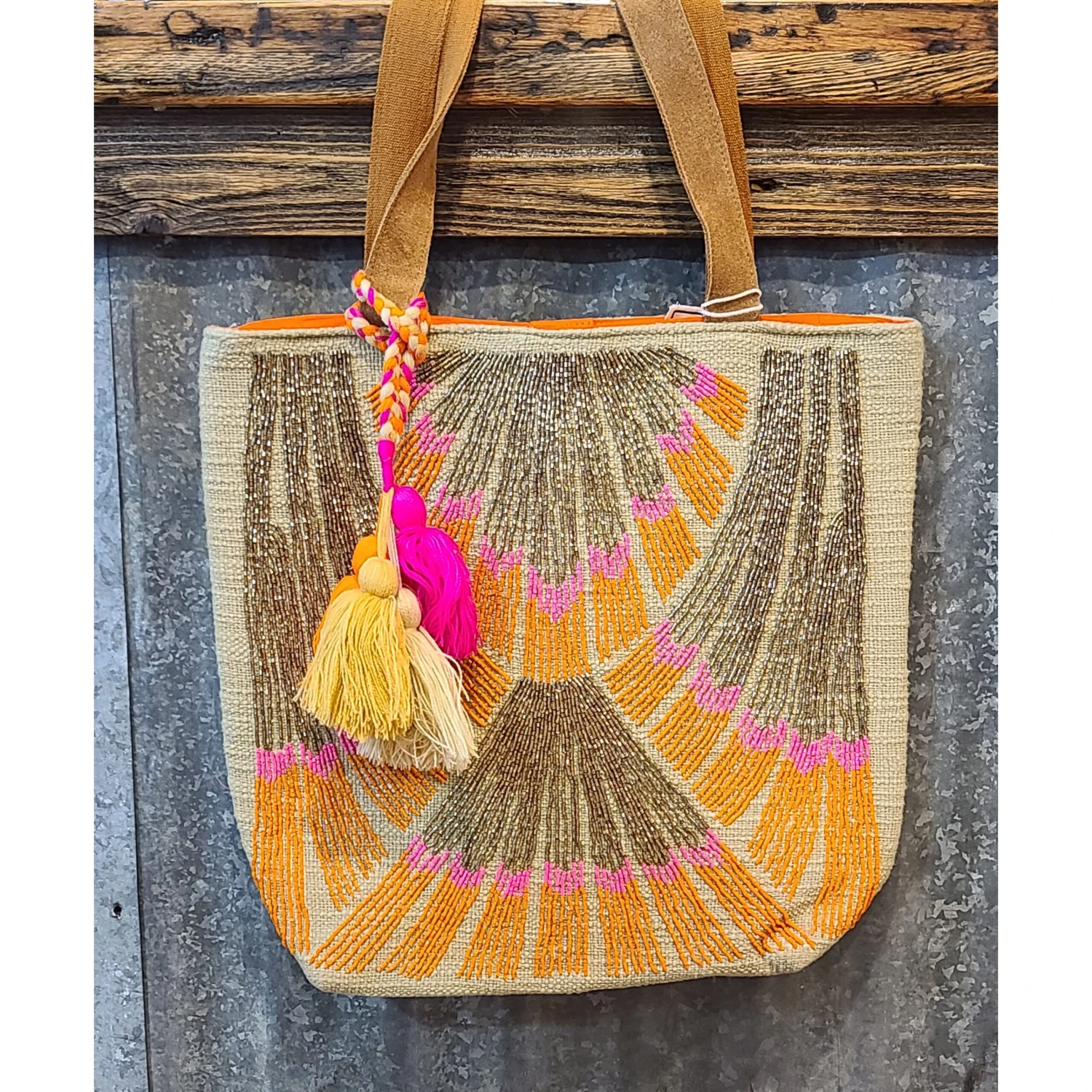 What a cute and fun little tote. We just love the rich, vibrant colors. The beaded detail makes this tote classy & fun all at the same time. Enjoy a fun day out, while having room for all of your essentials.Â