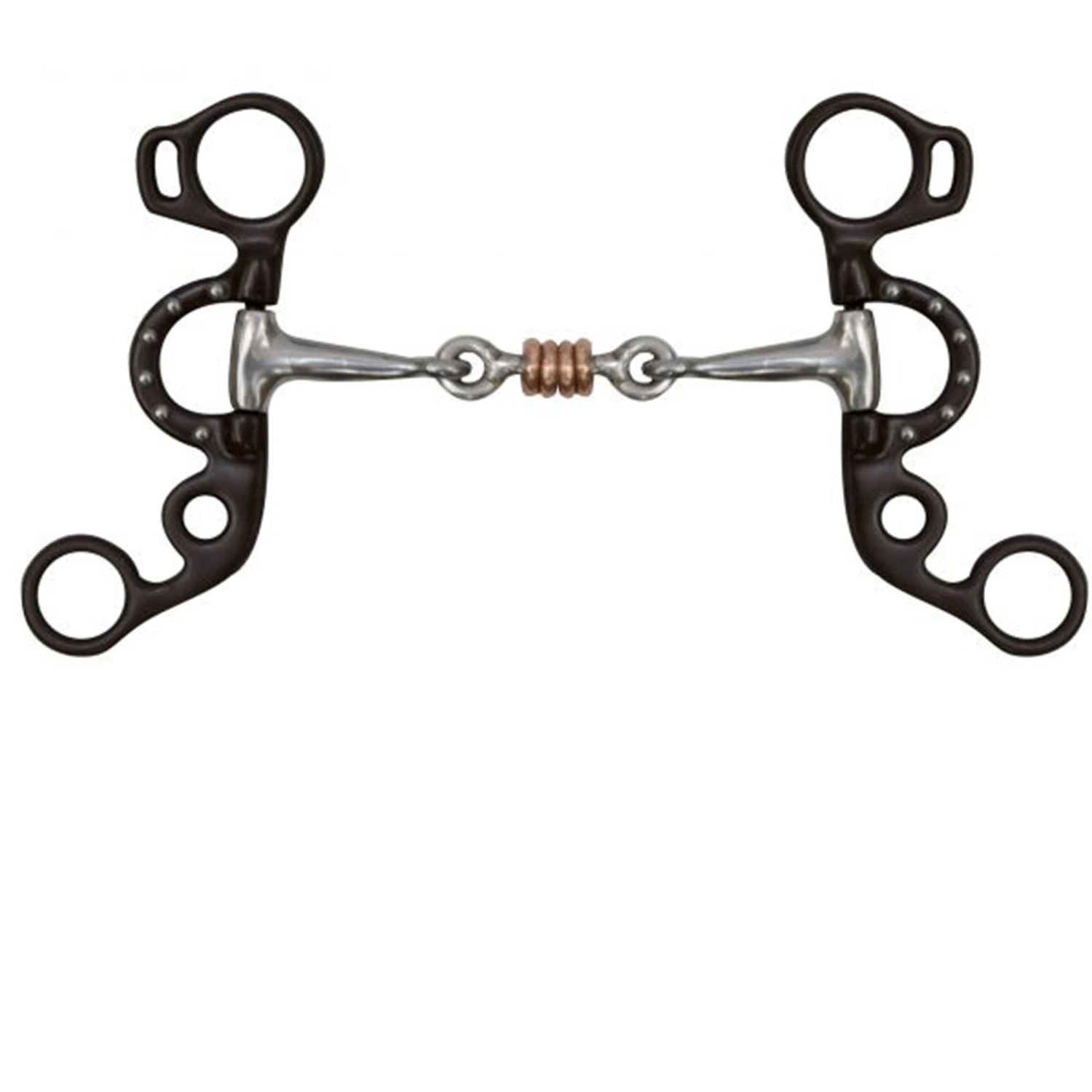 This three piece dogbone bit with copper rings is great for those young horses, or horse that need a distraction.Â