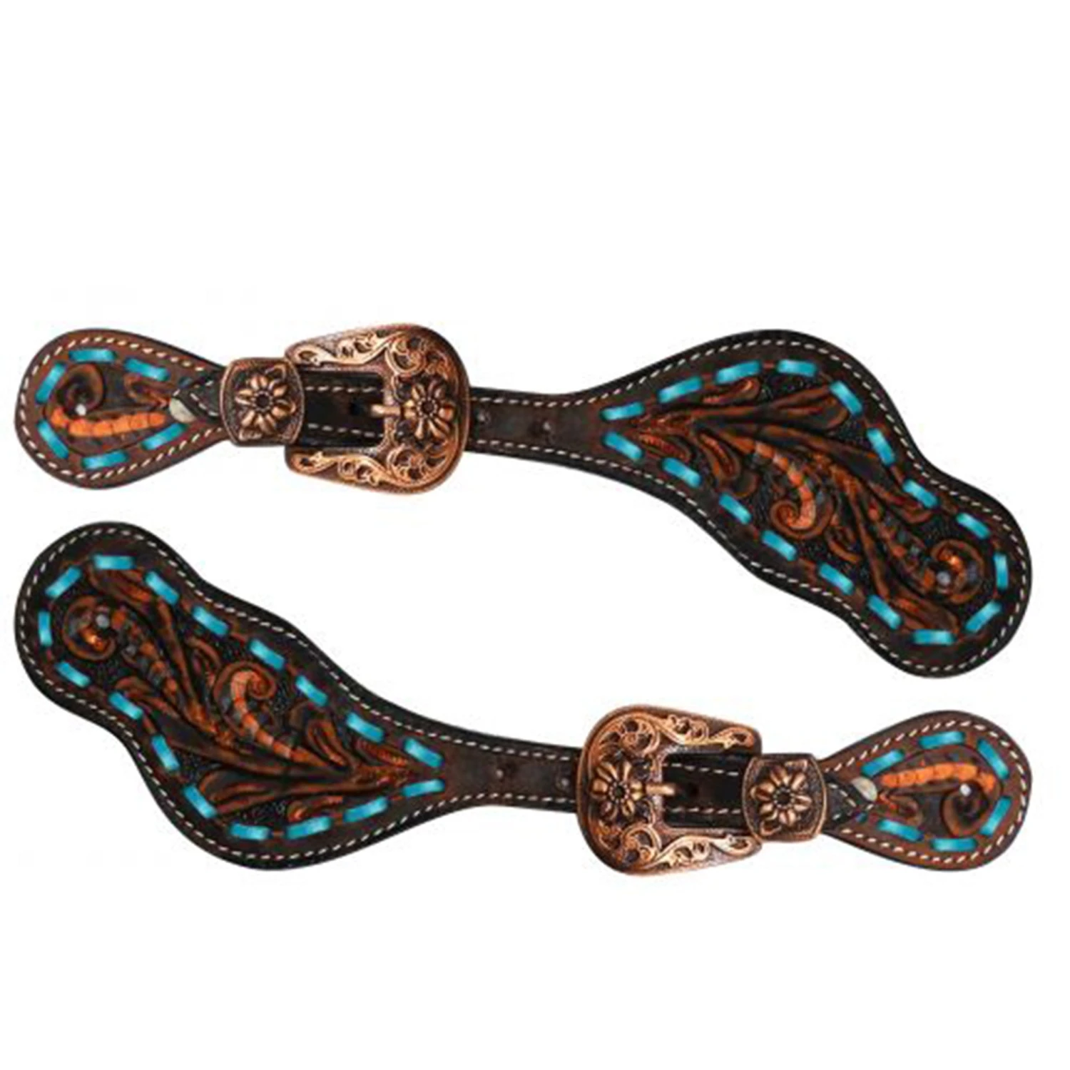 These super cute floral spur straps with bright buckstitching are not only eye catching but great quality. Also look at the details on the buckles.