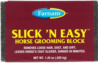 Fiberglass grooming block removes loose hair and dirt twice as fast as other grooming aids. One block will groom 10-12 horses. Also can be used on the underside of horse blankets, sheets and saddle pads to lift and remove hair.