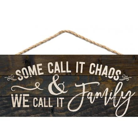 “Some call it Chaos & We call it Family”… Don’t we all?? This adorable wooden sign is the perfect way to add a little rustic touch to any home. Made of pine slats, it also features jute rope for hanging.