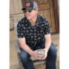 This great looking black wild rag features cream silhouettes. Roping, barrel racing, buffalo, horse shoes, this wild rag screams cowboy!